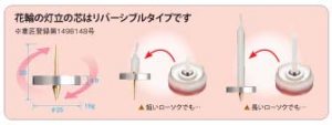 灯立の芯はリバーシブルタイプで短いローソクでも長いローソクでも